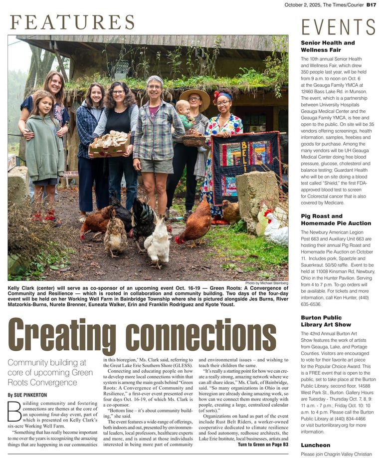 Great Lake Erie Southern Shore Network(GLESS), Black Environmental Leaders (BEL), Great Rivers & Lakes Permaculture Institute (GRPLI), Organic Connects, and a growing list of organizations and associations are collaborating to produce the GREEN ROOTS Convergence.